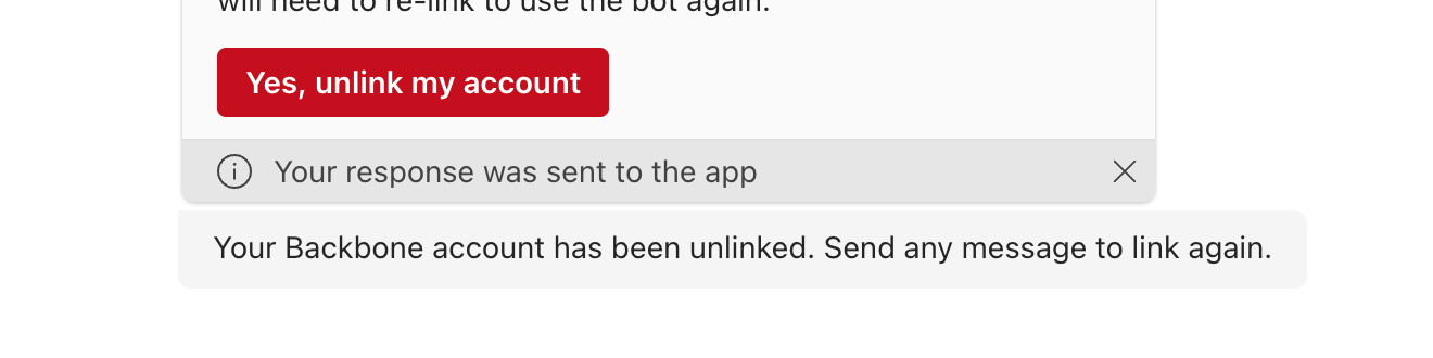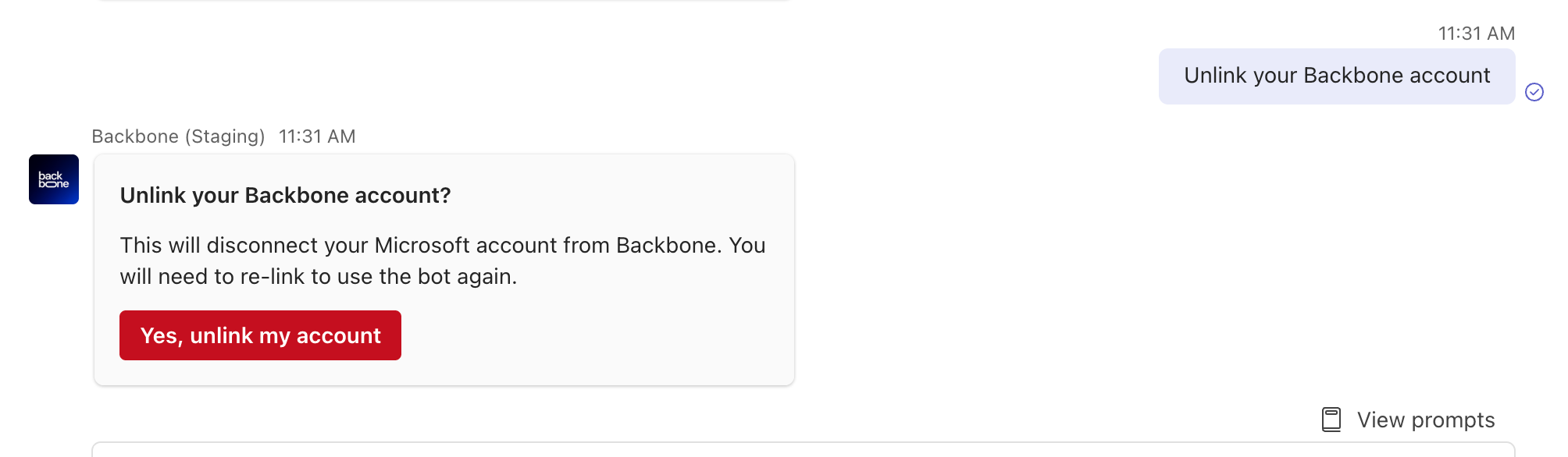 - Open a Chat in the Custom Agent select the Unlink option or type Unlink your Backbone account