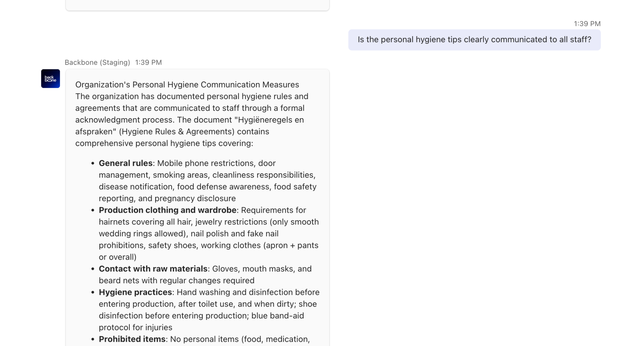 The pre-requisite is to install the Backbone Co-Pilot Custom Agent in Co-Pilot or Teams.